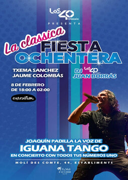 8 DE FEBRERO EN ES MOLI DES COMTE EN CABINA: TXEMA SÁNCHEZ, JAUME COLOMBÀS Y DESDE LOS40 CLASSIC JUAN BORRÁS! Y ADEMÁS POR PRIMERA VEZ EN MALLORCA, NOS SUBIMOS A LA MÁQUINA DEL TIEMPO CON LA SÚPER BANDA DE JOAQUÍN PADILLA LA VOZ DE IGUANA TANGO EN UN ESPECTÁCULO CON TODOS TUS NÚMEROS 1 EN CONCIERTO!